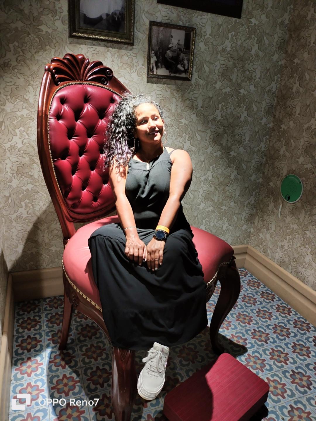 "Es una mujer morena de belleza cautivadora, con una piel cálida y luminosa que refleja la luz de manera suave. Su cabello oscuro, sedoso y voluminoso, se despliega en ondas naturales que enmarcan su rostro, dando un toque de misterio y sofisticación. Sus ojos, grandes y de un tono profundo, tienen una mirada intensa y llena de vida, que transmite una combinación de confianza y dulzura. La suavidad de sus rasgos, sumada a su sonrisa encantadora, hace que su presencia sea aún más magnética. Se Con una elegancia innata, cada gesto parece pensado, pero fluido y natural. Su energía es serena pero poderosa, y en su mueve compañía, el tiempo parece volar